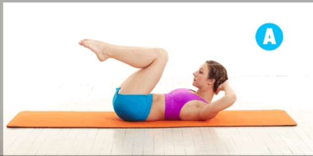 Bước 1: Nằm ngửa, nâng đầu gối vuông góc với mặt sàn. Hai tay ôm sau gáy, nhấc đầu lên cao hết mức có thể.