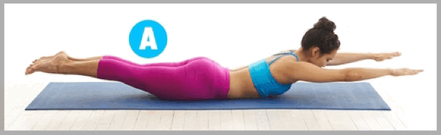 Bước 1: Nằm sấp, hai tay hai chân duỗi thẳng, lòng bàn tay úp xuống. Từ từ nâng tứ chi lên khỏi mặt đất