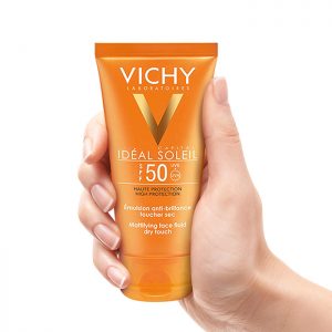 Kem chống nắng không màu không gây nhờn rít Vichy Ideal Soleil Mattifying Face Fluid Dry Touch SPF50 UVB+UVA 50ml giúp bảo vệ da trước tác hại của tia UVB và tia UVA. Dạng kem không màu, không gây bết dính hay nhờn rít, thông thoáng lỗ chân lông mà vẫn cung cấp đủ độ ẩm cho da sau khi thoa. Điểm cộng của em này là lâu trôi khi sử dụng dưới nước và phù hợp với tất cả các loại da, kể cả da nhạy cảm nên các bạn có da nhạy cảm, da mụn thì cứ yên tâm dùng nhé.